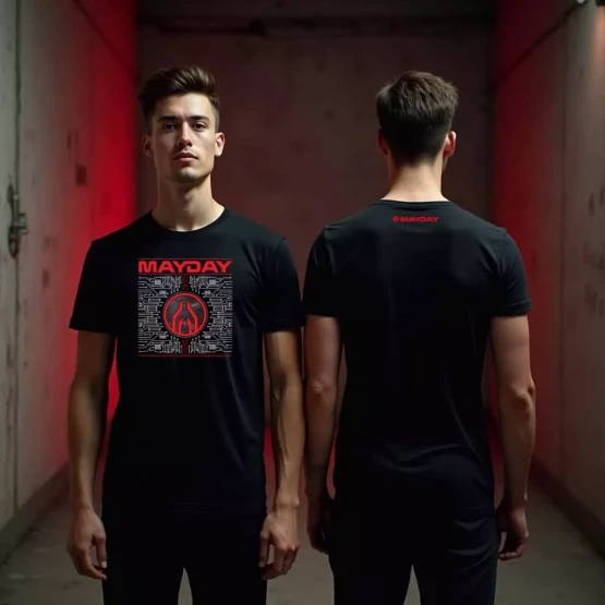 Futurystyczny design dla tych, którzy czują puls techno w każdej komórce. Połączenie cyfrowych detali z charakterystycznym logo MAYDAY tworzy wizję świata, gdzie muzyka steruje systemem.